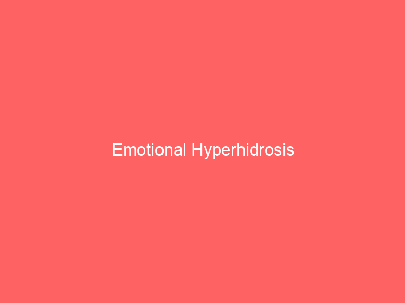 Emotional hyperhidrosis is a condition characterized by excessive sweating triggered by emotional stimuli, such as stress, anxiety, fear, or embarrassment. It is a specific form of hyperhidrosis, which refers to excessive sweating in general. Emotional hyperhidrosis can be further divided into two primary types: primary and secondary.